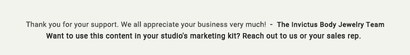 Welcome to the latest New Style Bulletin from Invictus Body Jewelry. We have new products that will entice your customers when they step into the shop, and have them leaving with some of these hot new looks in both their fresh and healed piercings. We are debuting our black PVD over implant grade titanium line […]