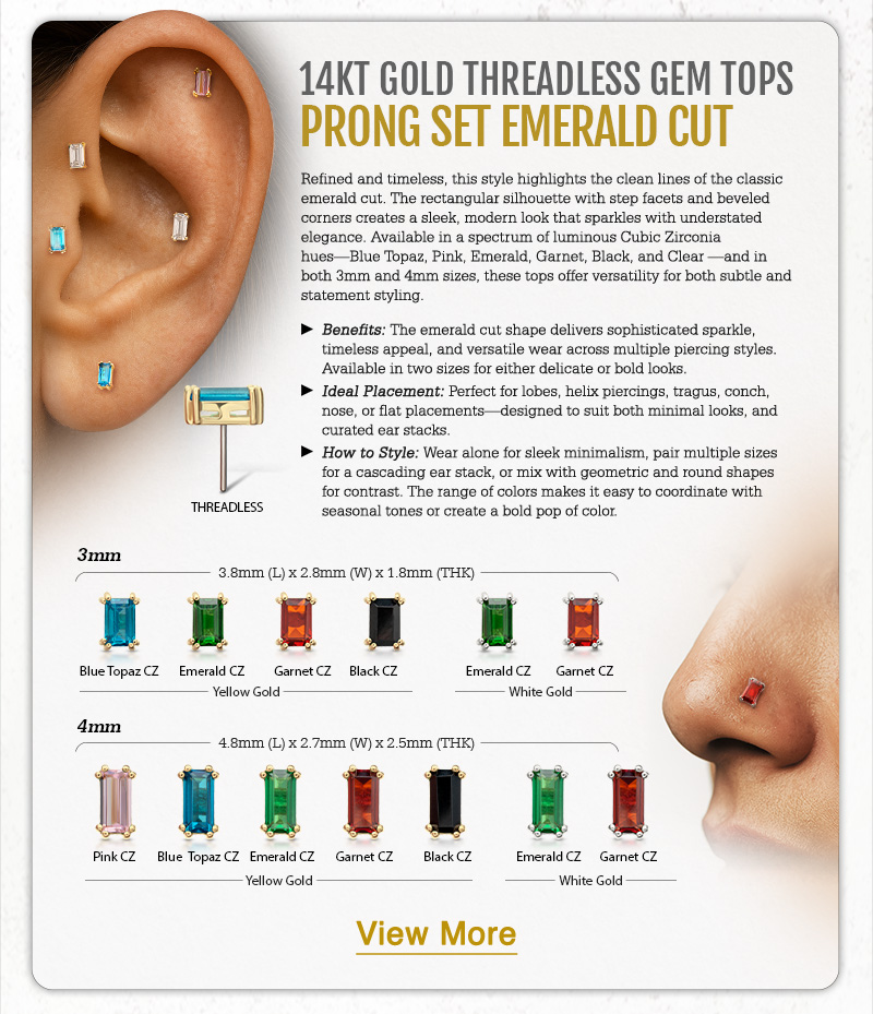 Featured Jewelry Invictus News Newsletter Glow Up in Gold: Emerald Cut / Multi-Gem Threadless Tops November 17, 2025November 24, 2025Invictus Body JewelryComment(0)